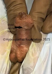 A urethral fistula after hypospadias repair is an abnormal communication that forms between the newly reconstructed urethra and the skin on the underside of the penis. This is the most common complication that occurs after hypospadias surgery. In this condition, the urine comes from the tip of the penis and leaks from the fistula site.